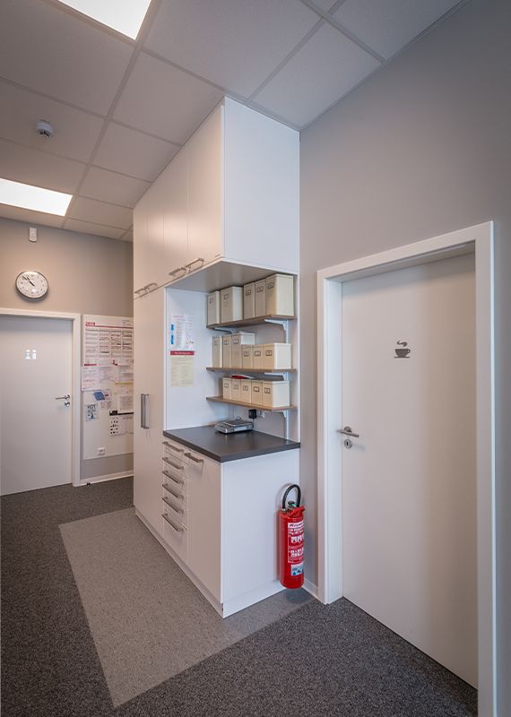 Auch für das Backoffice, die Lagerflächen und das Labor wird jedes Möbelstück individuell von uns konzipiert und gefertigt, um sowohl den spezifischen als auch den gesetzlichen Anforderungen gerecht zu werden.