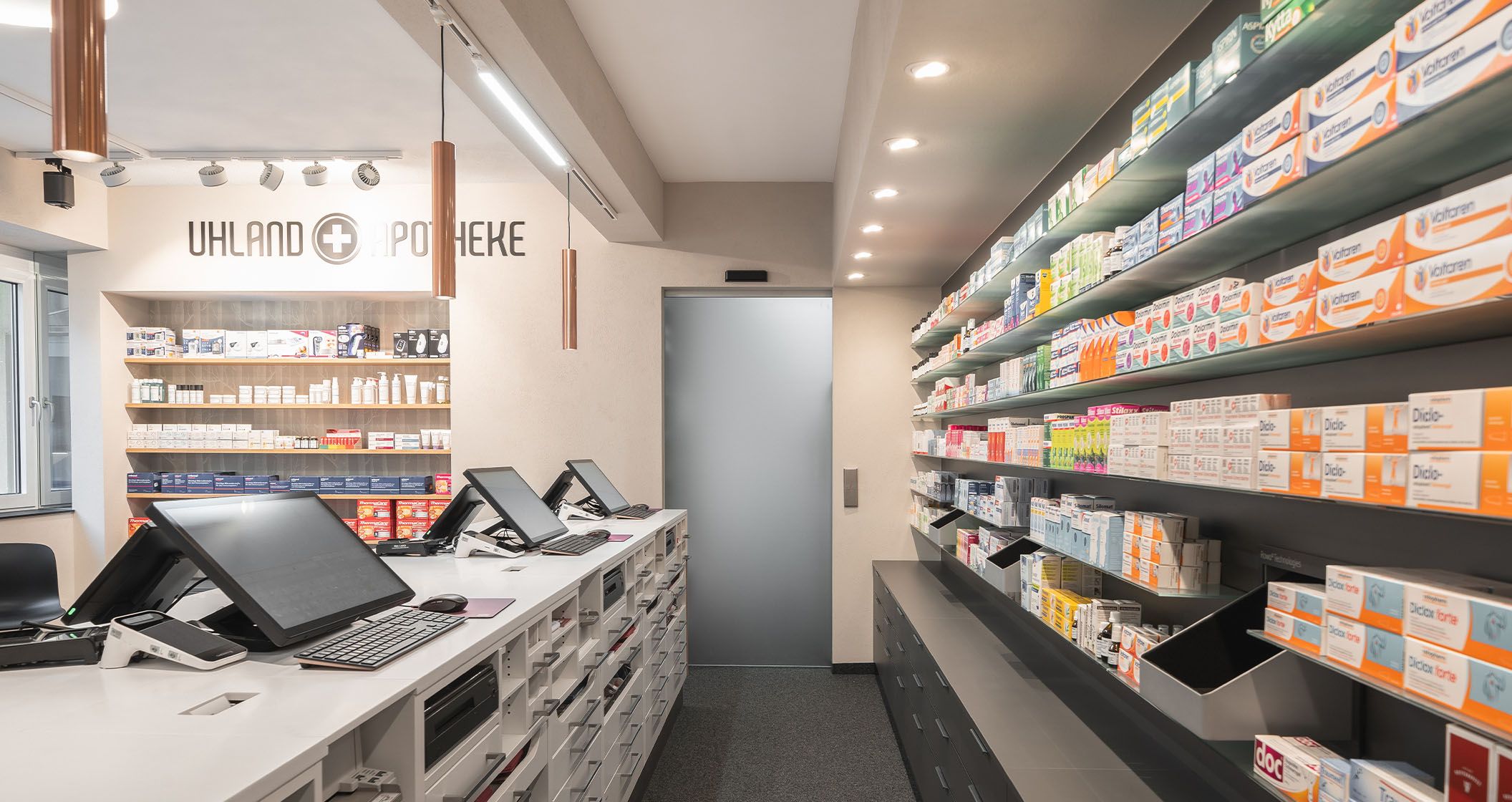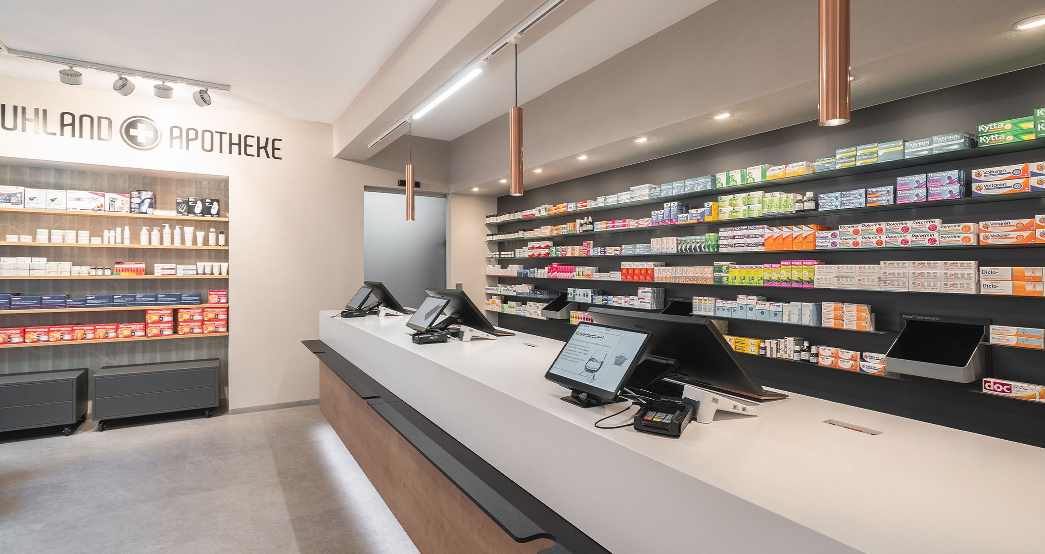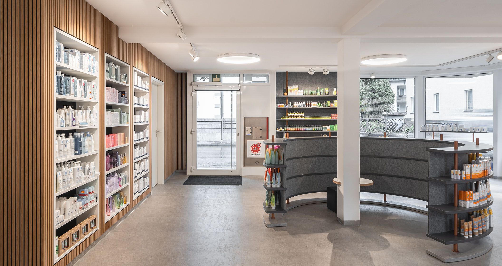 Bei diesem Projekt übernahmen wir Entwurf, Planung, Fertigung und Umsetzung der Apotheke, einschließlich der Koordination von Handwerkern. Als Projektleiter überwachten wir zudem sämtliche Gewerke wie z.B. Sanitär, Lüftung, Elektro, Automationstechnik und kümmerten uns selbstverständlich auch um das Genehmigungsverfahren.
