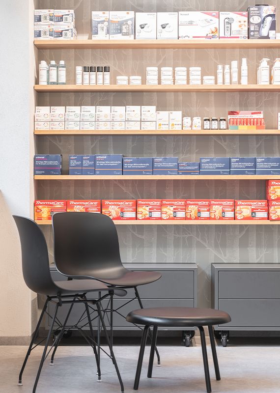 Entsprechend der Daimler Apotheke Schorndorf, Stammhaus der Uhland Apotheke, setzen wir auch bei diesem Projekt auf eine reduzierte, klare und moderne Formsprache die gleichzeitig einladend und beruhigend auf den Geist wirkt.