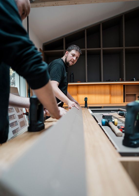 In unserer hauseigenen Schreinerei entstehen Möbel, Einbauten und Sonderlösungen, die höchste Qualität mit individueller Gestaltung verbinden. Maßarbeit, die perfekt passt – in Funktion, Form und Material.